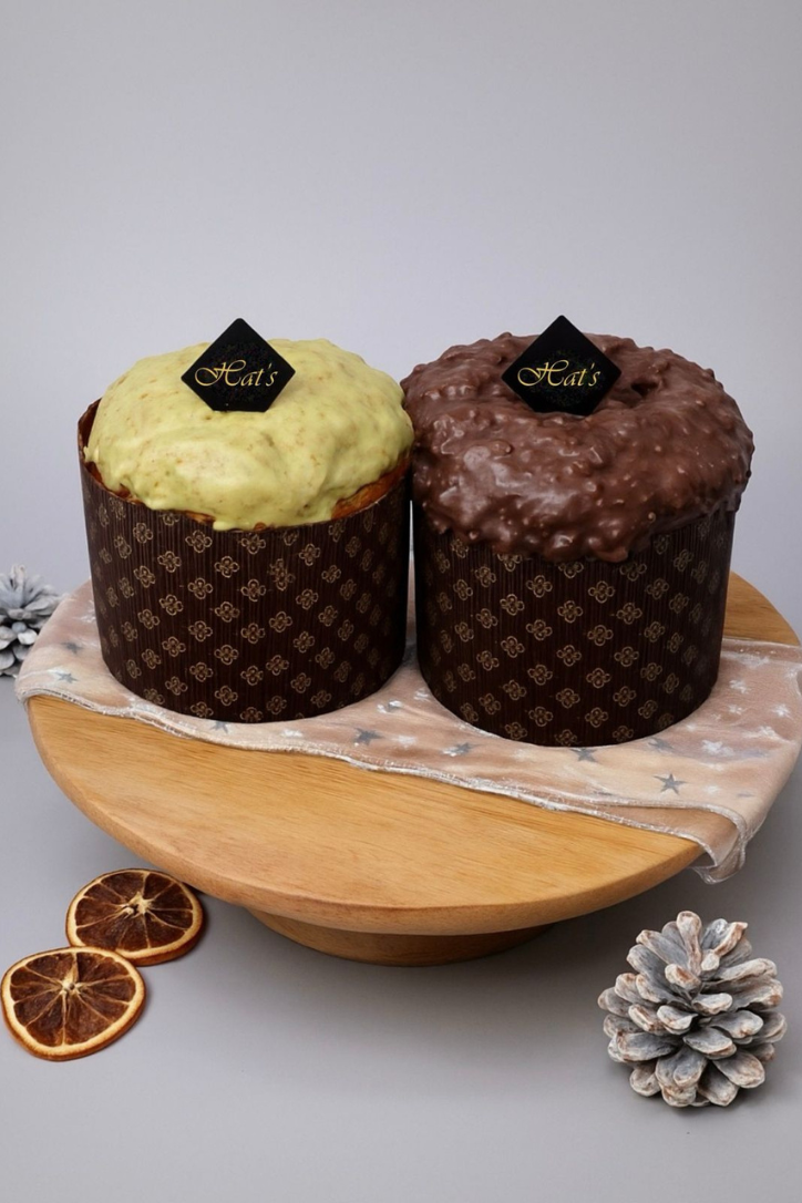 Chocolat Pistache : chocolat au lait suprême, gianduja, croustillant kadaïf, madeleine pistache.